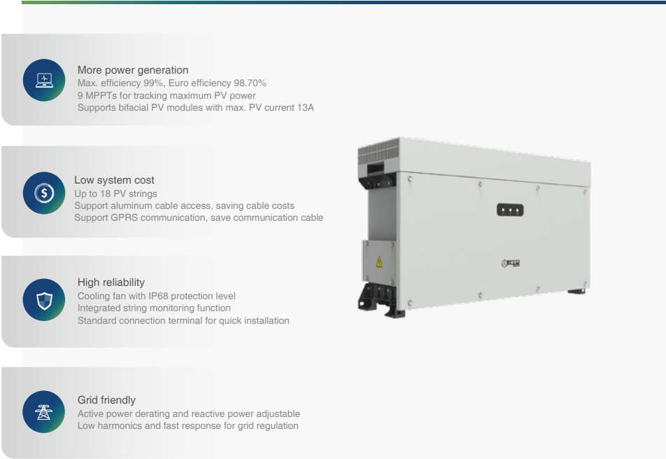 ● 10 MPPTs design, adaptive to multi-direction rooftop