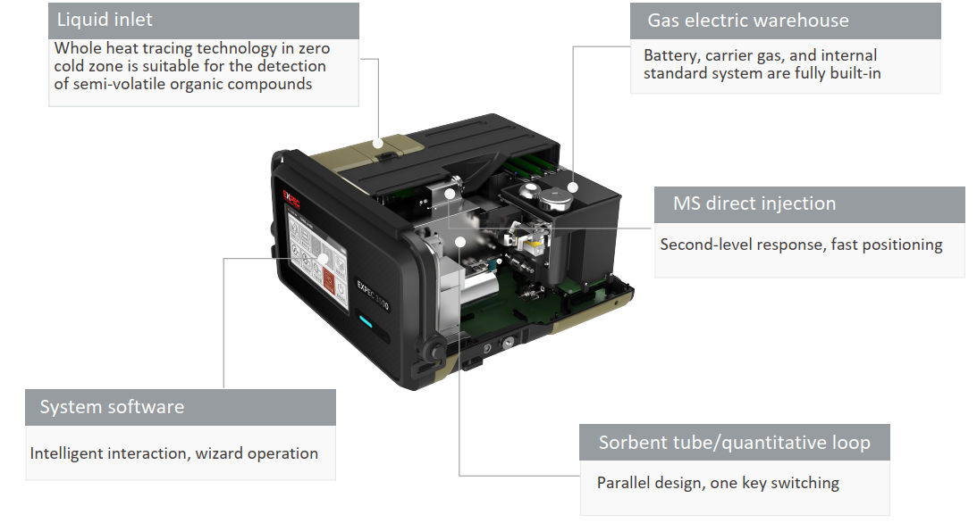 As a new portable GC-MS, the EXPEC 3500S not only features a stable and reliable instrument with high environmental adaptability, but also has the advantages of fast analysis speed, high sensitivity, high contamination resistance and a wide range of injection methods.